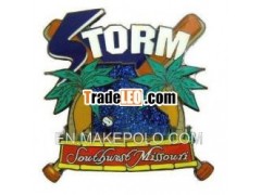 custom metal baseball trading pin by stamped iron with soft enamel and glitter coloring